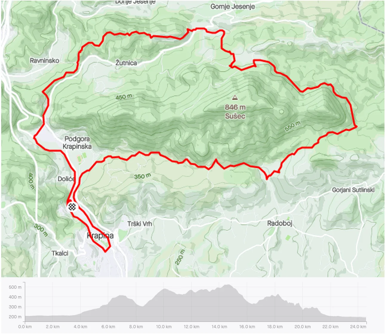 Nekako u to vrijeme ekipa iz kluba odlazi i na velike, stare, utrke u Italiju i Austriju ( tipa Salzkammergut Trophy) te nakon sudjelovanja na tim natjecanjima jedina misao koja se mota po glavi je bila "Brege imamo, šume imamo.. pa zakaj i mi tak nekaj ne bi imali u Krapini) ... i tako je stvoren koncept utrke s 2 potpuno označene staze sa zonama za okrjepu te svim ostalim popratnim stvarima koje bi svaka "prava" utrka trebala imati.